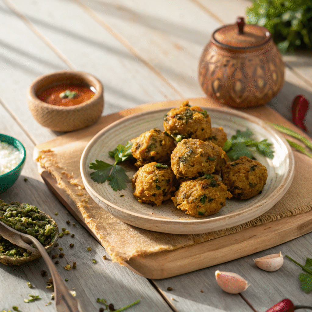 Soon, the kitchen was filled with the earthy aroma of roasting spices. The air-fried pakoras crackled as they came out — crispy on the outside, soft inside.